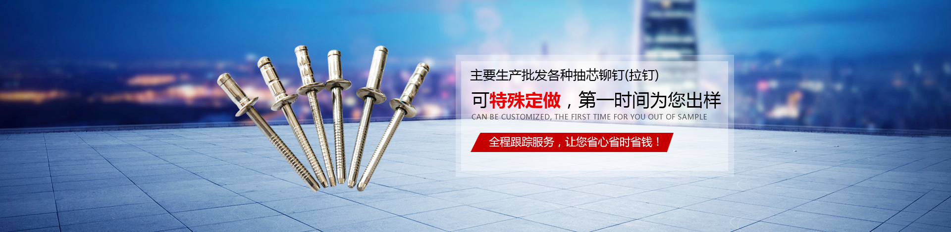 我們主要產品有:2.4-6.4的圓頭,沉頭(平頭),開口,封閉系列抽芯鉚釘(拉釘),還有燈籠鉚釘,拉絲鉚釘,雙鼓型鉚釘,拉花型鉚釘等等結構性鉚釘,材質有鋁,不銹鋼,鐵,銅;還有M3-M12的平頭,沉頭,小頭系列鉚螺母,有圓桿型、帶槽型、六角型(半六角)、盲孔型等,材質有鋁,不銹鋼,鐵,銅。